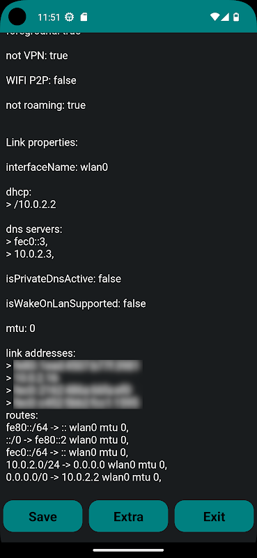 অ্যাপ্লিকেশন বর্তমান নেটওয়ার্ক কনফিগারেশন সম্পর্কে তথ্য প্রদর্শন করে।