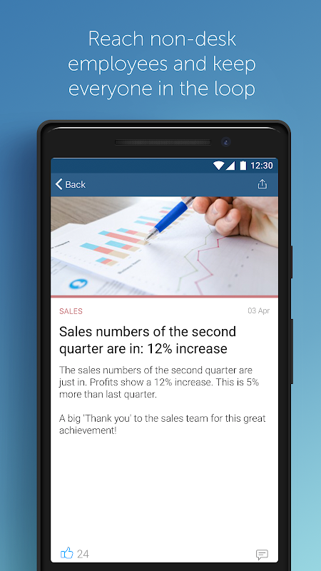 • সামাজিক মিথস্ক্রিয়া: কর্মীদের ভাগ করে নেওয়ার, পছন্দ করে এবং মন্তব্যগুলিতে সহকর্মীদের সাথে যোগাযোগ করার জন্য কর্মচারীদের অনুমতি দেয়
