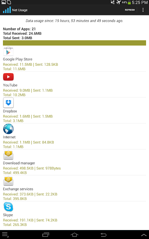 This app provides a list of all apps on your device that are using network traffic since a point in time (set by you). The list is sorted based on the usage of network data.