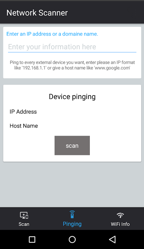 Furthermore the application offers a very simple pinging service that lets you check the connectivity and reachability of other devices either on the same network or in the internet.
