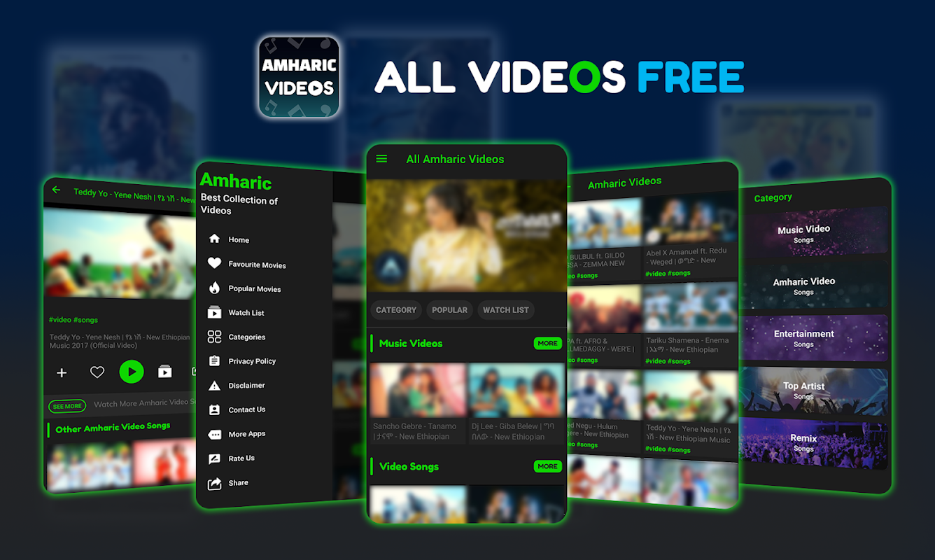 Watch Eritrean movies, Eritrean music, and local Tigrigna music. Amharic music is Ethiopian songs app offers Eritrean music video & Oromo music. Watch all the latest and oldies ethiopian music videos for free.