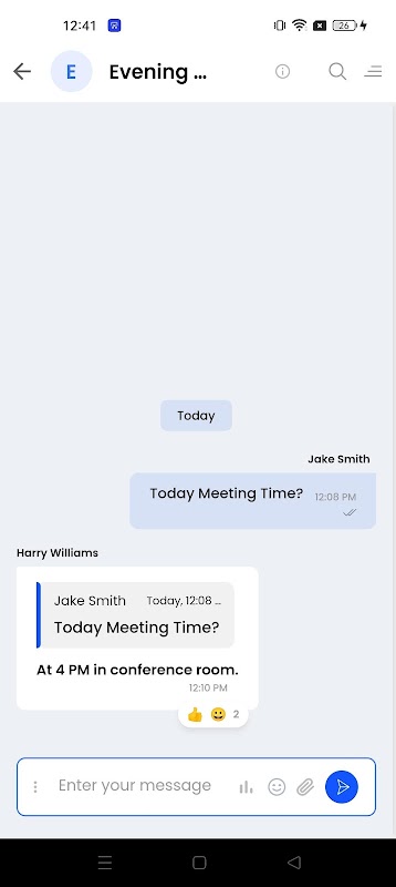 এই অ্যাপ্লিকেশনটি সংস্থার কর্মীদের মধ্যে যোগাযোগের জন্য এবং তাদের কাজ পরিচালনা ও বিতরণের জন্য দরকারী। এটি স্বতন্ত্র চ্যাট প্রদান করে এবং একাধিক গ্রুপ এবং সাবগ্রুপ তৈরি করার পাশাপাশি গুরুত্বপূর্ণ তথ্য এবং মিডিয়া নিরাপদে স্থানান্তর করে এবং স্থানীয় স্টোরেজে ফাইল এবং ফটো সংরক্ষণ করে।