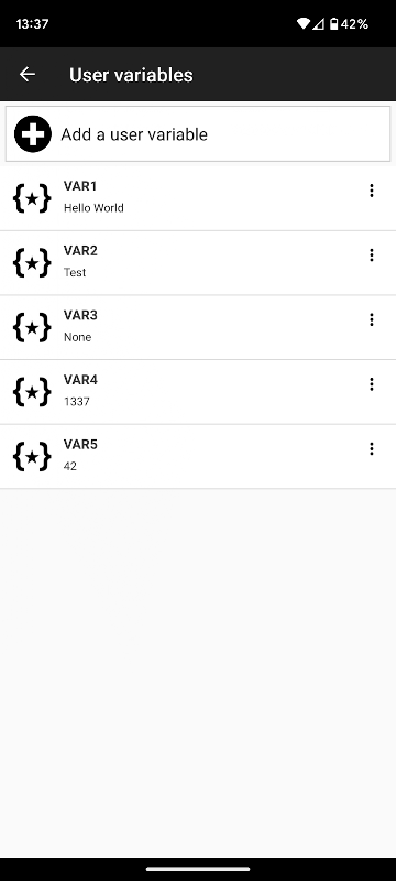 আপনার কাজগুলি সম্পাদন করার পাশাপাশি, অ্যাপটি আপনাকে কয়েকটি কয়েকটি সেটিংস কনফিগার করতে দেয়, যেমন ব্যবহারকারীর ভেরিয়েবল, অনুমতি, নিরাপত্তা এবং বিজ্ঞপ্তি বিকল্প এবং আরও অনেক কিছু।