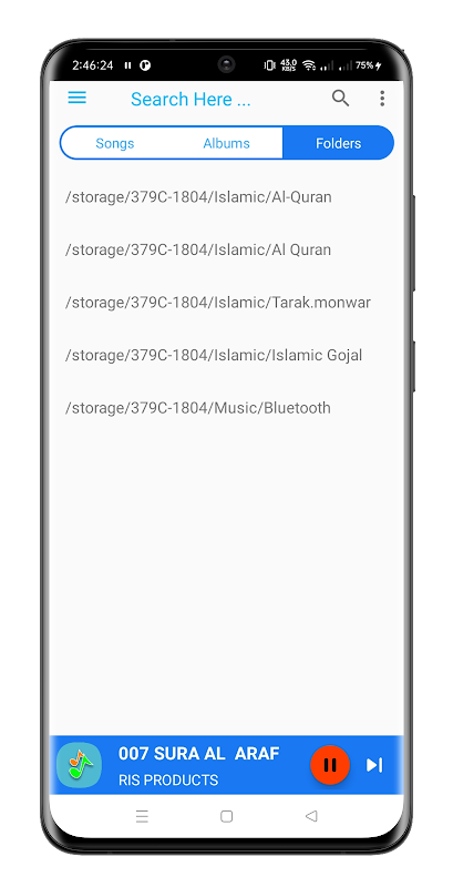 ফোল্ডারের ভিতরের অডিওর তালিকা।