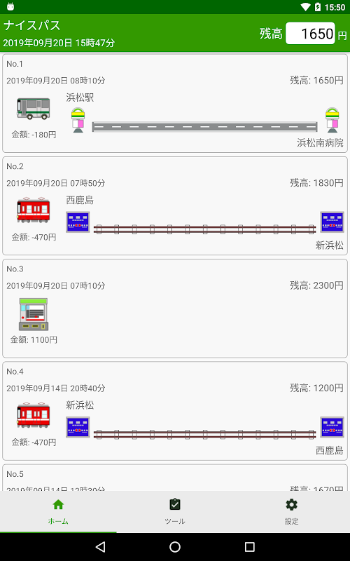 浜松市の遠州鉄道のnicepassの利用履歴を表示するアプリケーションです。(非公式)