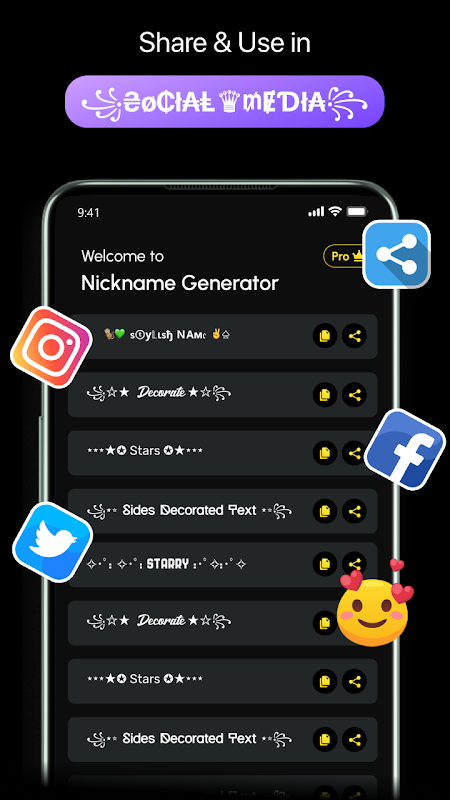 অনন্য নাম এবং পাঠ্য শৈলী তৈরি করুন। বায়ো, প্রোফাইল এবং গেমের ডাকনাম কাস্টমাইজ করুন।
