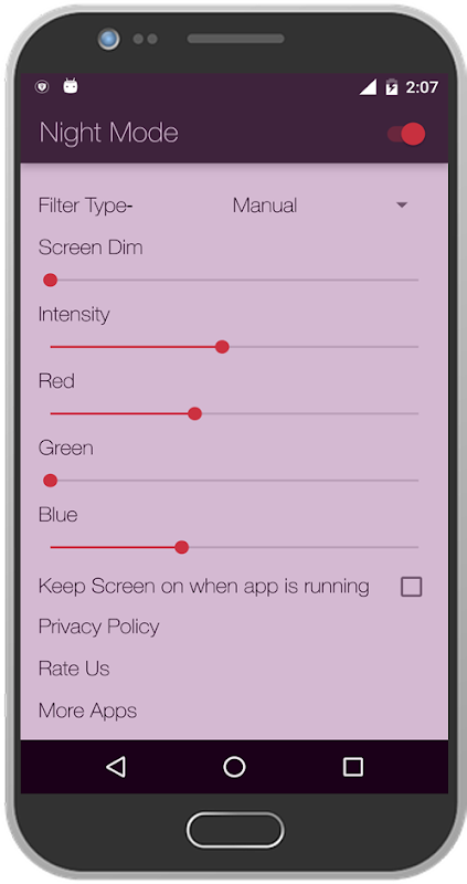 নাইট মোড প্রধান লক্ষ্য রং ফিল্টার হয়