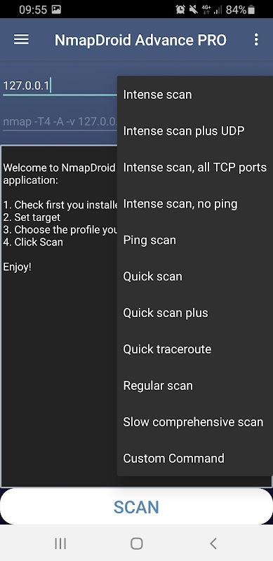 Nmap-Droid is unofficial Android frontend for the well known Tool Nmap scanner. Frontend will help you install Nmap and how to use it in the tutorial section.