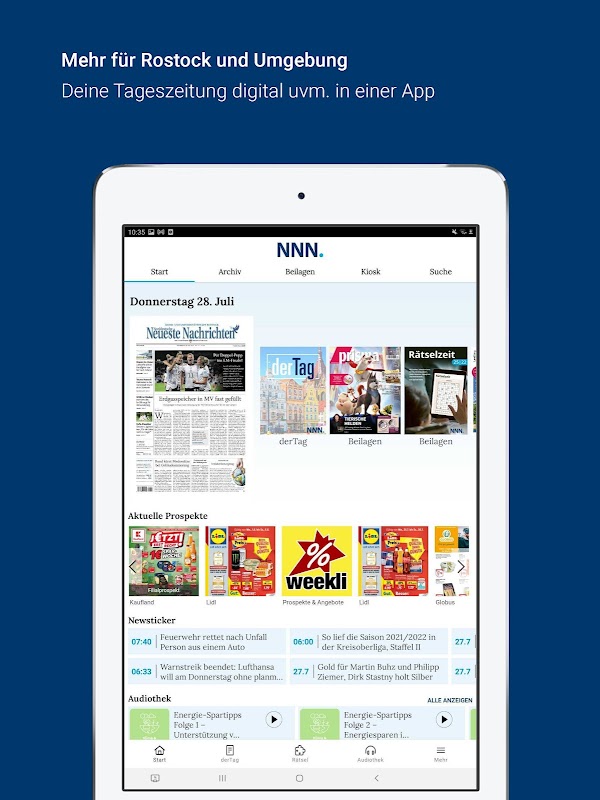 আপনার স্থানীয় দৈনিক সংবাদপত্র অ্যান্ড্রয়েড ট্যাবলেট এবং স্মার্টফোনের জন্য অপ্টিমাইজ করা হয়েছে। ব্যবহারিক পড়ার মোডে যথারীতি আপনার স্থানীয় দৈনিক সংবাদপত্রের মাধ্যমে স্ক্রোল করুন। এনএনএন ই-পেপার - রোস্টকের জন্য খবর।