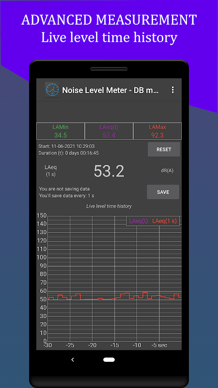 এই অ্যাপ্লিকেশনটি পেশাদার ব্যবহারের জন্য ডিজাইন করা হয়নি, এটি পেশাদারভাবে ব্যবহার করা যেতে পারে (শুধুমাত্র যদি এটি সঠিকভাবে সমতল করা হয়), যদি এটি ভালভাবে সমতল করা না হয়। এটি গোলমালের সঠিক পরিমাপের গ্যারান্টি দেয় না।