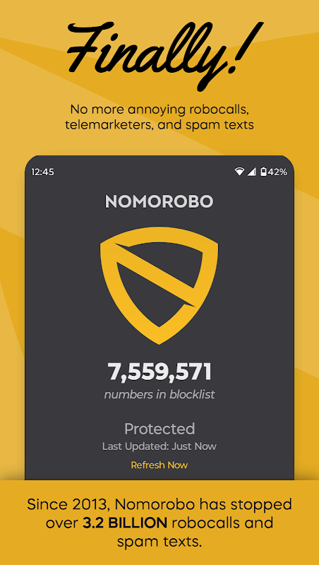 Nomorobo ব্লক বিরক্তিকর robocalls, বিক্রি, এবং ফোন সেইসব স্ক্যাম থেকে কীভাবে। শান্তি আনা এবং আপনার ফোন ফিরে শান্ত। 14 দিনের জন্য বিনামূল্যে চেষ্টা করে দেখুন - মাত্র $ 1.99 / মাস পর।