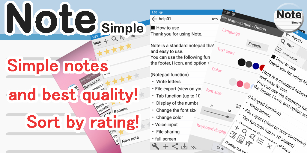 যারা দ্রুত এবং সহজে নোট নিতে চান তাদের জন্য সহজ কিন্তু বহুমুখী মেমো, যারা অনেক মেমো তৈরি এবং পরিচালনা করতে চান এবং যারা টেক্সট এডিটিং এর পেশাদার যারা বিভিন্ন পুঁথি তৈরি করতে চান। আমি একটি বইয়ের জন্য লক্ষ্য করেছি।