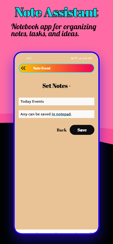 এর মসৃণ এবং স্বজ্ঞাত ব্যবহারকারী ইন্টারফেসের সাথে, আমাদের নোটপ্যাড অ্যাপ আপনাকে আপনার চিন্তাভাবনাগুলি লিখতে, করণীয় তালিকা তৈরি করতে, অনুস্মারক লিখতে এবং আপনার সমস্ত গুরুত্বপূর্ণ নোটগুলিকে এক জায়গায় পরিচালনা করার জন্য একটি বিশৃঙ্খলামুক্ত পরিবেশ প্রদান করে। অ্যাপটি আপনাকে সংগঠিত এবং উত্পাদনশীল থাকতে সহায়তা করার জন্য বিস্তৃত বৈশিষ্ট্য সরবরাহ করে: