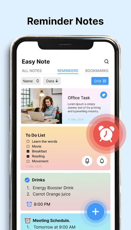 এই নোটপ্যাড ইজি নোট অ্যাপে রিমাইন্ডার সহ নোট, মেমো এবং করণীয় তালিকা সংরক্ষণ করুন