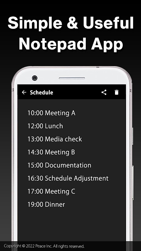 এটি একটি সহজ এবং দরকারী নোটপ্যাড অ্যাপ। করণীয়, ধারণা, সময়সূচী ইত্যাদি।