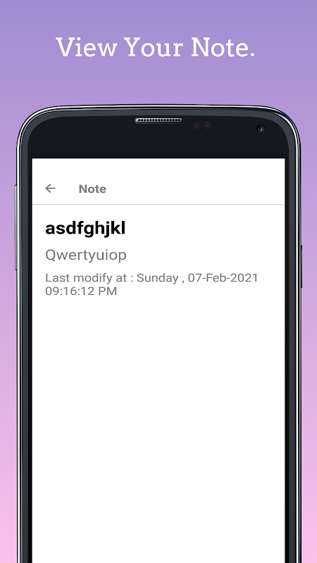 এই অ্যাপ্লিকেশনটি ব্যবহার করে একটি সাধারণ নোটপ্যাড অ্যাপটি তার নোট তৈরি করতে এবং এসকিউএলাইট ডেটাবেজে সেই নোটটি সংরক্ষণ করতে পারে। ব্যবহারকারী তার নোট সম্পাদনা করতে এবং মুছতেও পারে। ব্যবহারকারী তার নোটটি দেখতে পারেন।