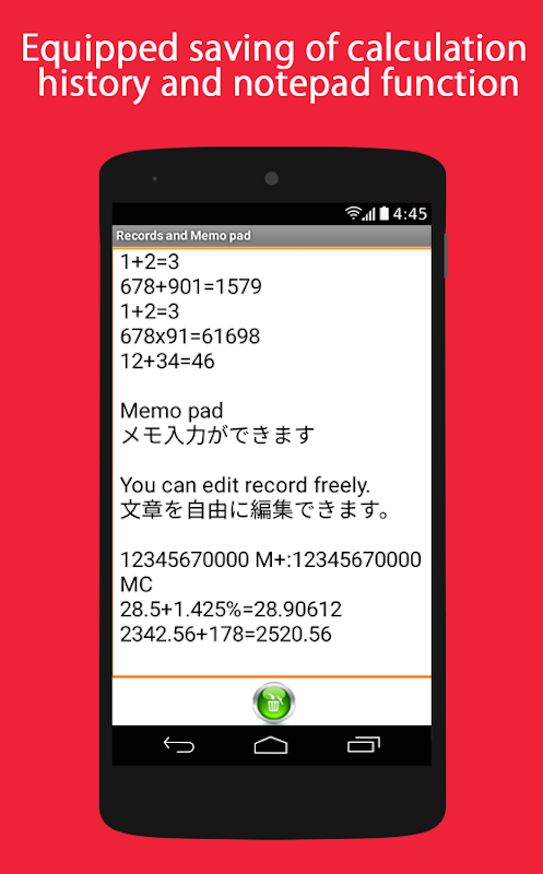 As you can also freely edit, and enter text on the calculation history screen, it may also be used to take notes.