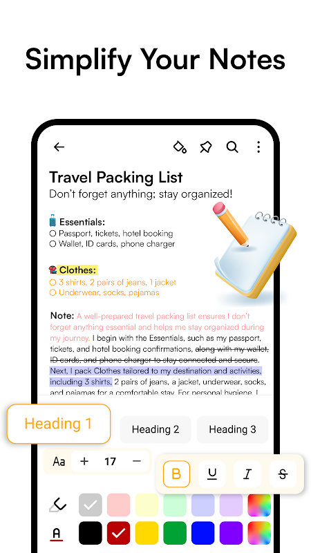 📝 সহজ এবং ব্যবহারে সহজ: দ্রুত নোট নেওয়ার জন্য ডিজাইন করা একটি সুবিন্যস্ত ইন্টারফেসের মাধ্যমে আপনার চিন্তাভাবনা, ধারণা এবং কাজগুলি অনায়াসে ক্যাপচার করুন।