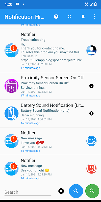 অ্যাপটি সিস্টেম বা ইনস্টল করা কোনো অ্যাপ দ্বারা পোস্ট করা সমস্ত বিজ্ঞপ্তি রেকর্ড করতে সক্ষম।