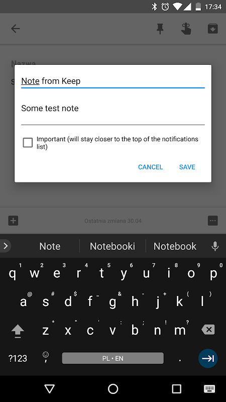 এটা আপনি বিজ্ঞপ্তিতে নোট করা করতে দেয়। শুধু নিজে, কিন্তু সিস্টেম ভাগ মেনু বা পাঠ্য নির্বাচন মেনুর মাধ্যমে (অ্যান্ড্রয়েড 6.0 বা তার থেকে নতুন তে) খুলুন।