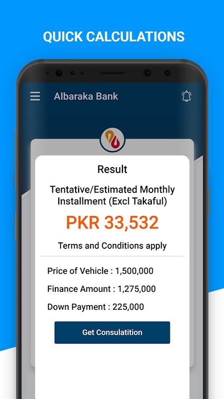 Nsol services give its users the facility to add car manufacturer, tenure, equity, and car delivery type, give the information whether you need tracker or not, and then click on calculate.