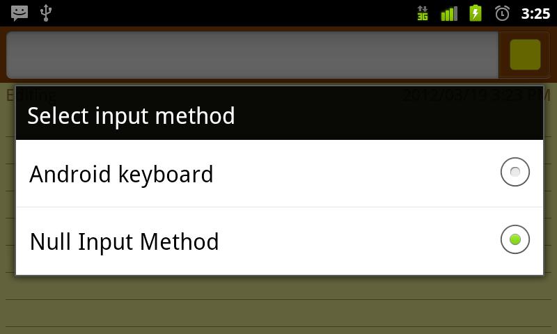 A non visible soft keyboard (Input Method) intended to be used with hardware Bluetooth and USB keyboards when you do not want a Soft Keyboard that covers a lot of the screen.