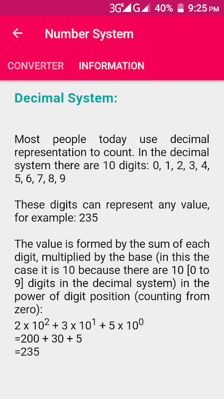 অতএব ডিজিটাল নম্বর এবং তার রূপান্তর & গাণিতিক অপারেশন গবেষণা সংশ্লিষ্ট মৌলিক বিষয় বুঝতে জন্য খুবই গুরুত্বপূর্ণ হয়ে ওঠে। এটা সহজ মৌলিক বিষয় বুঝতে তৈরি করতে হলে, এই ডিজিটাল নম্বর রূপান্তর Android অ্যাপ্লিকেশন দশমিক, বাইনারি, হেক্সাডেসিমেল & অকট্যাল সংখ্যার মধ্যে দ্রুত রূপান্তর অপারেশন সম্পাদন করতে উন্নত।