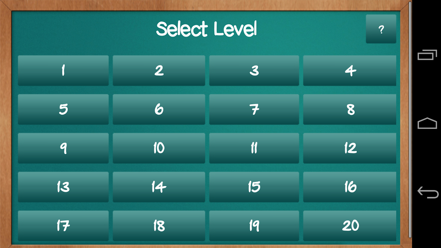 The difficulty of the levels is proportional to the number of selected level. It starts from the easiest level (level 1) to the hardest (level 20).