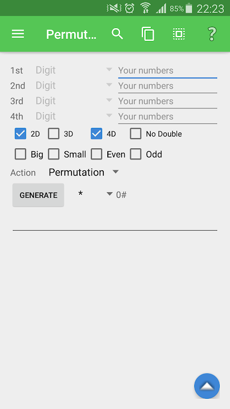 Permutation 4D is a tool to generate a permutation of 2,3, or 4 digits of the numbers given.