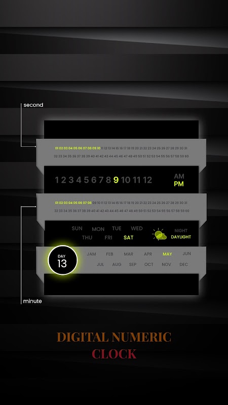 এই অ্যাপটি আপনাকে সময়, তারিখ, সপ্তাহের দিন ইত্যাদি কাস্টমাইজেশন দেয়।