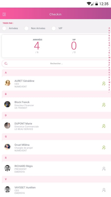 আগমন সংখ্যা আমাদের ইন্টারেক্টিভ ডিরেক্টরির সঙ্গে লাইভ এবং ভিআইপি অংশগ্রহণকারীদের সিঙ্ক্রোনাইজ করা হয়।