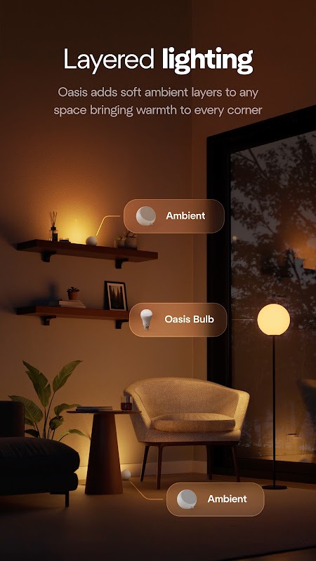 মরুদ্যান আপনাকে সকালে মৃদু আলোয় জাগিয়ে তোলে, দিনের বেলায় উষ্ণ শক্তিদায়ক আলোতে স্থানান্তরিত করে এবং সন্ধ্যায় একটি আরামদায়ক অ্যাম্বার আভা দিয়ে আপনাকে নিস্তেজ করতে সাহায্য করে - সব কিছুই আপনি আঙুল না তুলেই৷