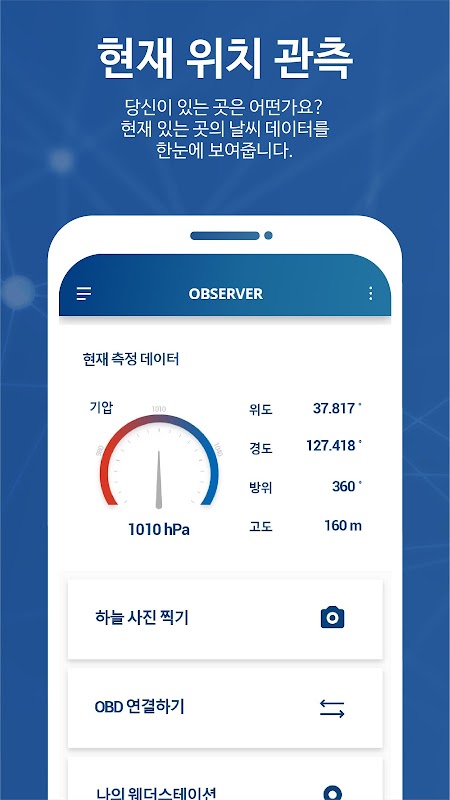 여러분의 스마트폰, 자동차, 건물에 당신만의 기상 관측소를 설치하고 OBSERVER 에 참여하세요.