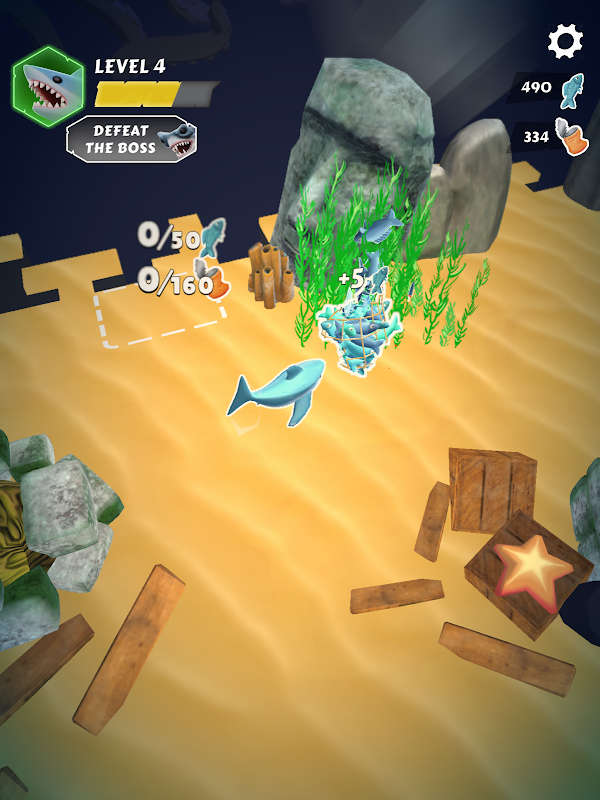 একবার আপনি যথেষ্ট শক্তিশালী হয়ে উঠলে, রাজা শার্ককে চ্যালেঞ্জ করুন এবং তাকে পরাজিত করুন এবং সর্বোচ্চ শিকারী হয়ে উঠুন!