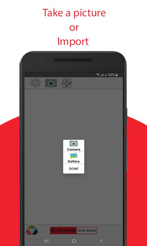 • Use scanning camera to Capture or import images from gallery to start scanning