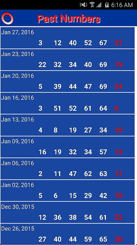* Past winning numbers - Data retrieval could be delay based on user data service.