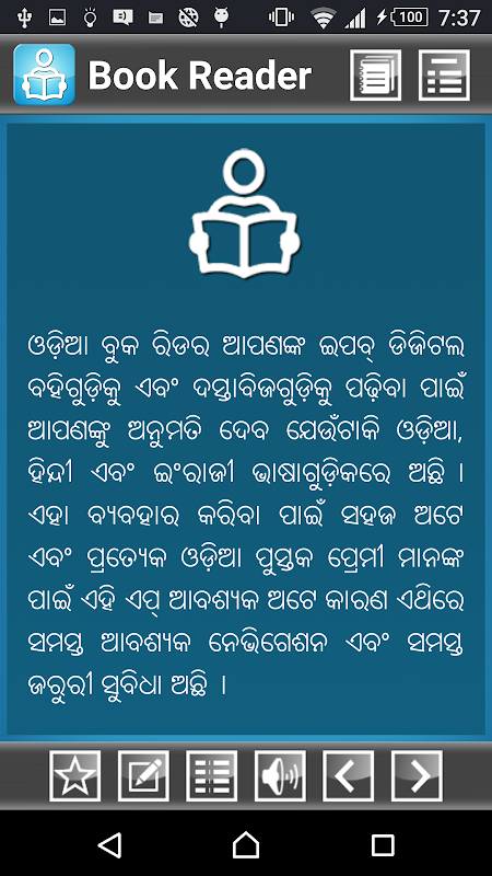 - টেক্সট টু স্পিচ সমর্থন আছে. Odia, হিন্দি এবং TTS ব্যবহার করে ইংরেজি বই পড়ুন.