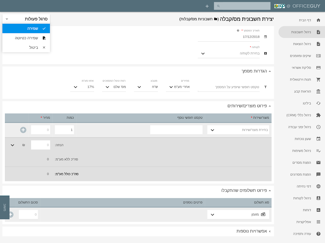 OfficeGuy לניהול חשבונות וגביה 1.0