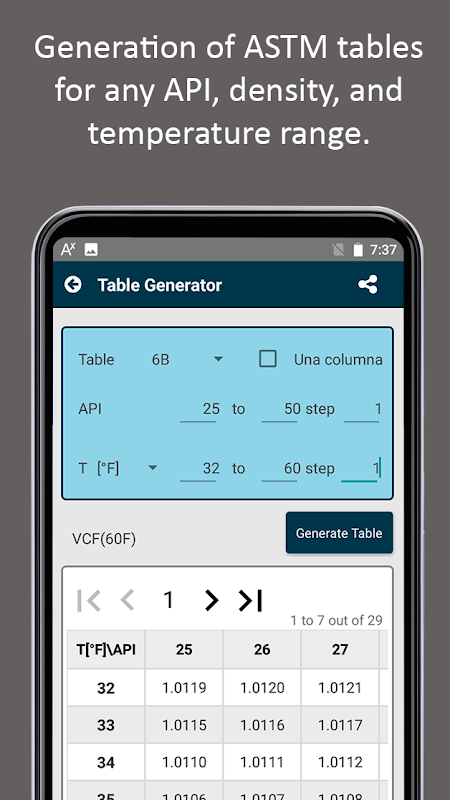 কাস্টম API, ঘনত্ব এবং তাপমাত্রা পরিসীমার জন্য সম্পূর্ণ ASTM টেবিল তৈরি করুন এবং দেখুন।