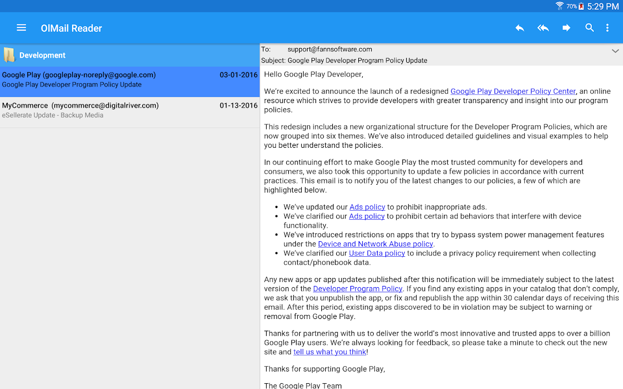 OlMail রিডার এবং রপ্তানিকারক দ্বারা Android এর জন্য একটি মাইক্রোসফট আউটলুক ইমেইল পাঠক. OlMail রপ্তানিকারক (ডেস্কটপ সহচর - ডেমো সংস্করণের সাথে প্রয়োজন ক্রয়) *** OlMail রিডারে দেখার জন্য আউটলুক ইমেইল রপ্তানি করতে *** প্রয়োজন হয়.