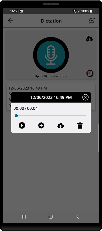 "ডিক্টেশন" মডিউল থেকে ব্যবহারকারী ফাইলটি রেকর্ড করতে পারেন এবং "রোগীর নাম", "ডস" এবং "টেমপ্লেট টাইপ" এ ক্লিক করে প্রয়োজনীয় রোগীর তথ্য সংযুক্ত করতে পারেন এবং একইটিতে ক্লিক করে সংযুক্ত তথ্য সম্পাদনা করতে পারেন৷ এটি বাধ্যতামূলক নয় যে ব্যবহারকারী করবে নির্দেশিত ফাইলের সাথে সমস্ত তথ্য সংযুক্ত করুন। এর পরে টেবিলভিউ থেকে রেকর্ড করা ফাইলে "আপলোড" ক্লিক করে, সেই ফাইলটি সার্ভারে (demo.omnimd.com) আপলোড করা শুরু হবে যা আপনি URL ক্ষেত্রে লগইন করার সময় দিয়েছেন। এখানে ব্যবহারকারী রেকর্ড করা ফাইলটি খেলতে, যুক্ত করতে এবং মুছতে পারে।