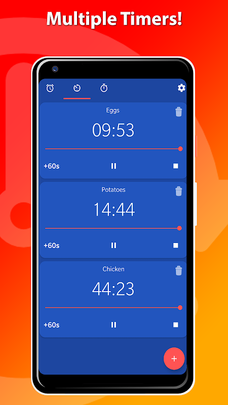 With OneClock you can set up to 8 alarms at once. You can change the number of alarms and time difference between alarms in the settings menu. It's also possible to add just one alarm.