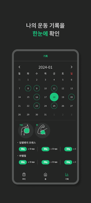 - আপনি ক্যালেন্ডারের মাধ্যমে আপনার ব্যায়ামের রেকর্ড পরীক্ষা করতে পারেন।