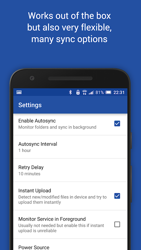 • কনফিগারযোগ্য অটোসিন্ক ব্যবধান: 15 মিনিট, 30 মিনিট, প্রতি ঘন্টা, ...