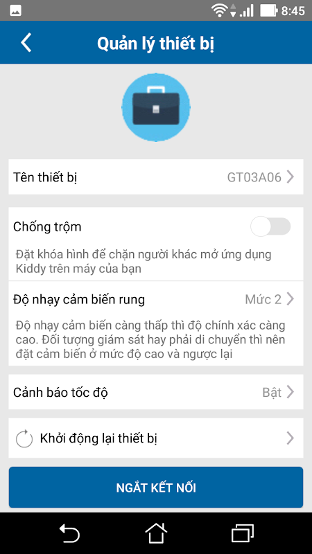 + Cho phép theo dõi tình trạng các cảm biến trên thiết bị