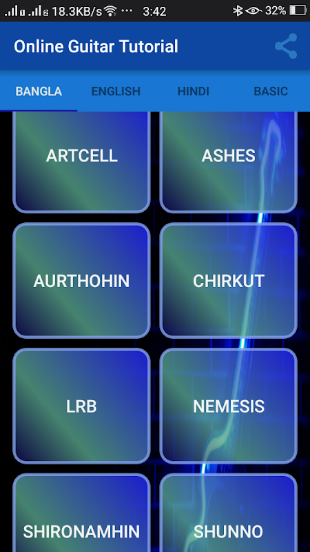 **Guitar tutorial of Artcell, Ashes, Aurthohin, Chirkut, Lrb, Nemesis, Shironamhin, Shunno, Warfaze in Bangla section.
