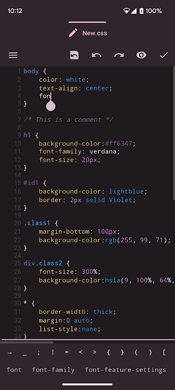 • হাইলাইট করা কীওয়ার্ড এবং সিনট্যাক্স