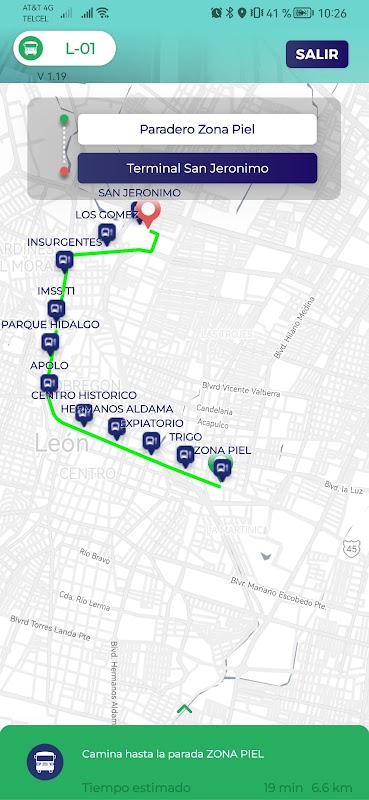 OptiBus Leon মধ্যে শহুরে পরিবহন রুট দেখায়।