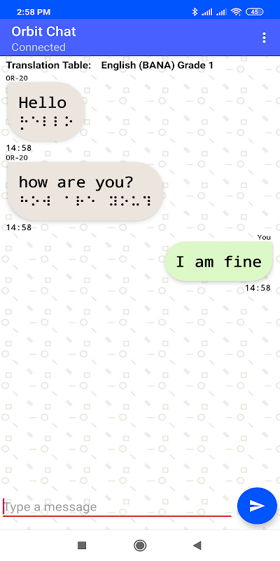 সিস্টেমটি দৃষ্টিশক্ত ব্যক্তিকে ফোন বা ট্যাবলেটের অন-স্ক্রিন কীবোর্ড ব্যবহার করে বার্তা টাইপ করতে একটি পরিচিত চ্যাট বা বার্তাপ্রেরণকারী ব্যবহারকারী-ইন্টারফেস ব্যবহার করতে অনুমতি দেয়, যা তাত্ক্ষণিকভাবে অনুবাদ করা হয় এবং ব্রেইল অন্বেষণকারীর অরব্যাট রিডার 20 ডিভাইসে প্রদর্শিত হয়। ডিফব্লাইন্ড ব্যবহারকারী তার বার্তাগুলি ব্রেইলে পাঠিয়েছিলেন ব্রিলি ক্যাপ্যাডটি অরবিট রিডার 20-এ এবং সেগুলি সরল পাঠ্যে অনুবাদ করা হয়েছে এবং তাত্ক্ষণিকভাবে ফোন বা ট্যাবলেটে প্রদর্শিত হবে। অ্যাপটি স্ব-ভয়েসিং যা কোনও অন্ধ ব্যক্তিকে কোনও বিশেষ স্ক্রিন-রিডিং সফ্টওয়্যার প্রয়োজন না করে কোনও বধির লোকের সাথে যোগাযোগ করার জন্য এটি ব্যবহার করতে দেয়।