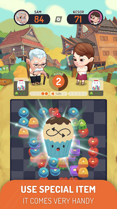 একটি মাল্টিপ্লেয়ারের ম্যাচ 3 গেম হিসাবে, এখন আপনি কেবল একা খেলেন না, লিডারবোর্ডের শীর্ষে যাওয়ার জন্য আপনার বন্ধুদের সাথে বা সম্পূর্ণ অপরিচিতের সাথে যুদ্ধ করেন। আপনার সমস্ত দক্ষতা ব্যবহার করুন এবং বিশ্বের চারপাশে সেরা যারা দেখায়।